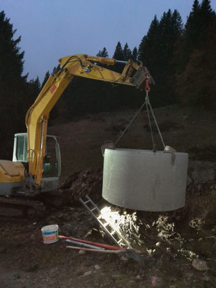 Kanalisationsleitung schweissen im Gebiet Holzegg. Material und Werkzeug musste mit Hubschrauber angeflogen werden.