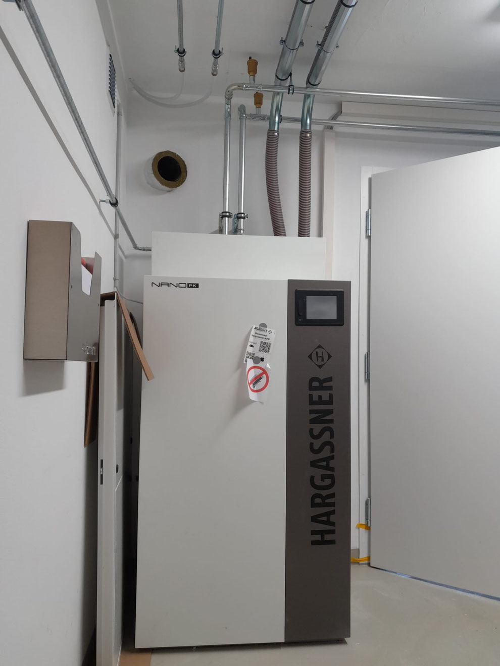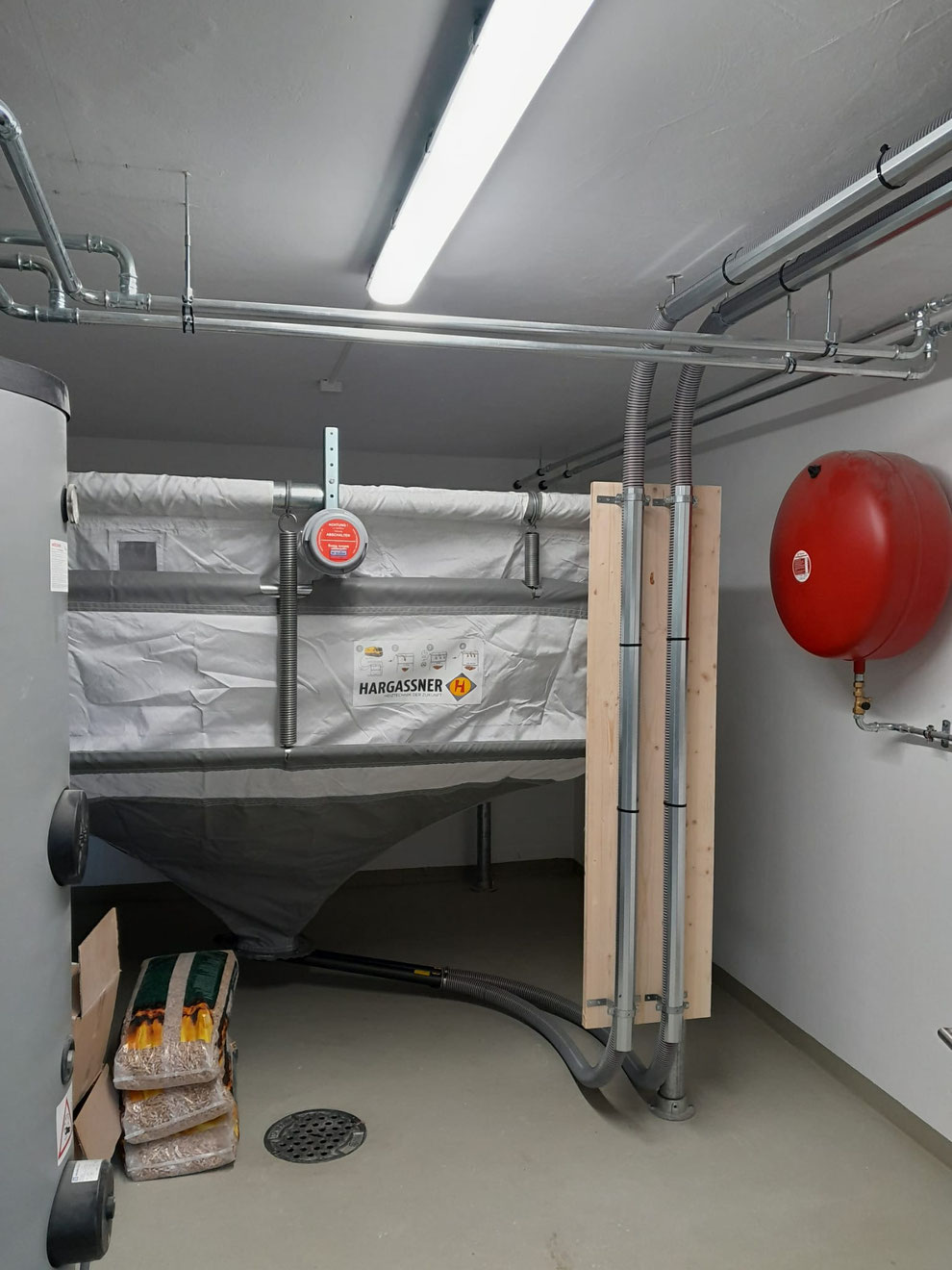 Pelletheizung in Wohngebäude mit Speichersack auf Federn